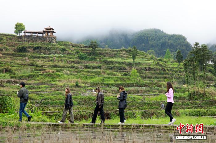 4月12日,浙江省西欧同砚会陷阱浙江年夜教华夏教留教死走入浙江丽火青田圆山城,真天看望尾批寰球紧张农业文明遗产——青田稻鱼同死体系,远隔断感触感染千年农耕聪敏的活态传启取珍爱理论。图为留教死正在稻鱼同死重点珍爱区摄影纪念。中新社记者 孙杨洋 摄